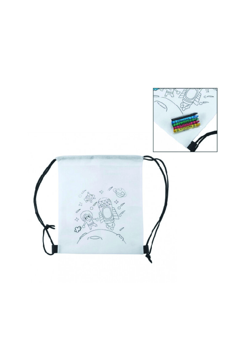 Zaino “Baby”in tnt. da colorare. Disegno stampato Chiusura con coulisse.