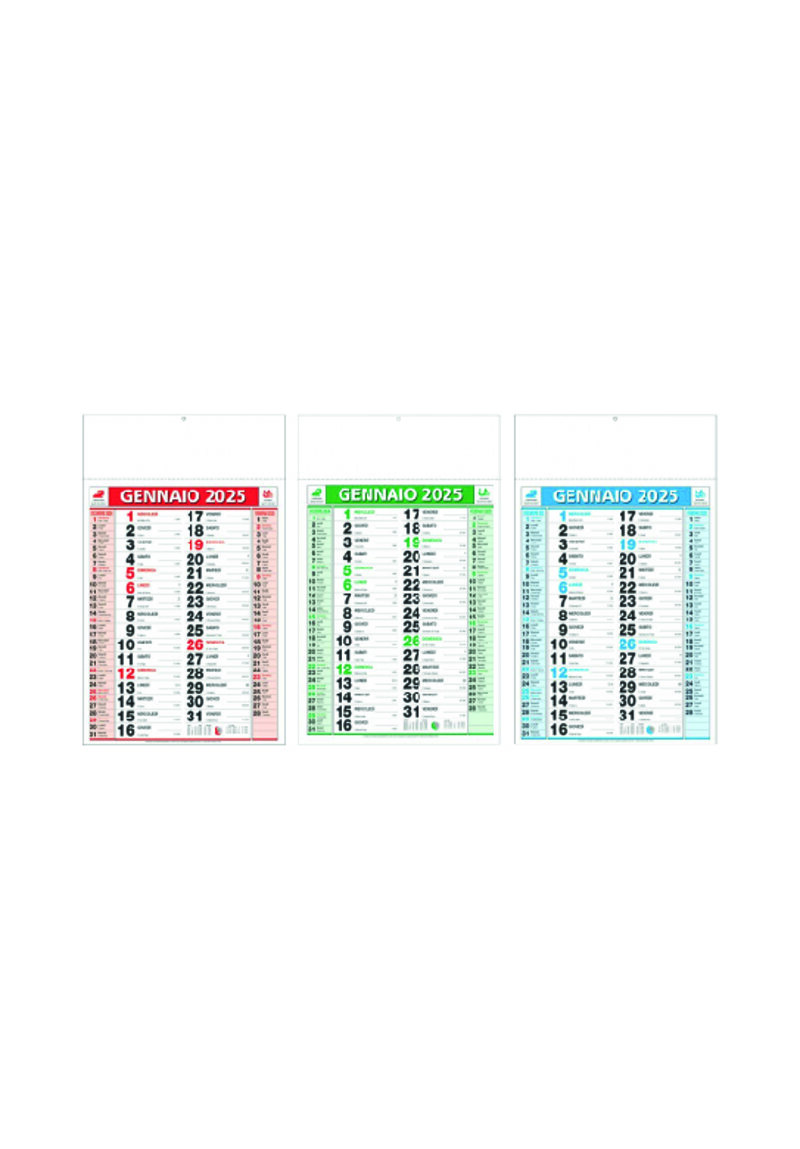 Calendario olandese medio. Trimestrale 12 fogli. Testata pressofusa.