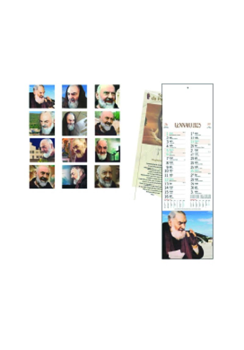 Calendario “San Pio”. Trimestrale 12 fogli. Testata pressofusa. Carta