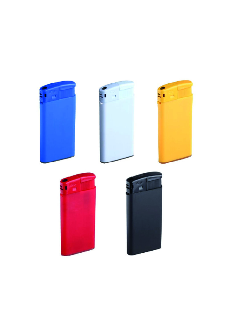 Accendino ricaricabile in plastica. Colori: bianco, giallo, rosso, blu, nero. Dimensioni 3,5x 7,9x0,9 Imballo 500x colore