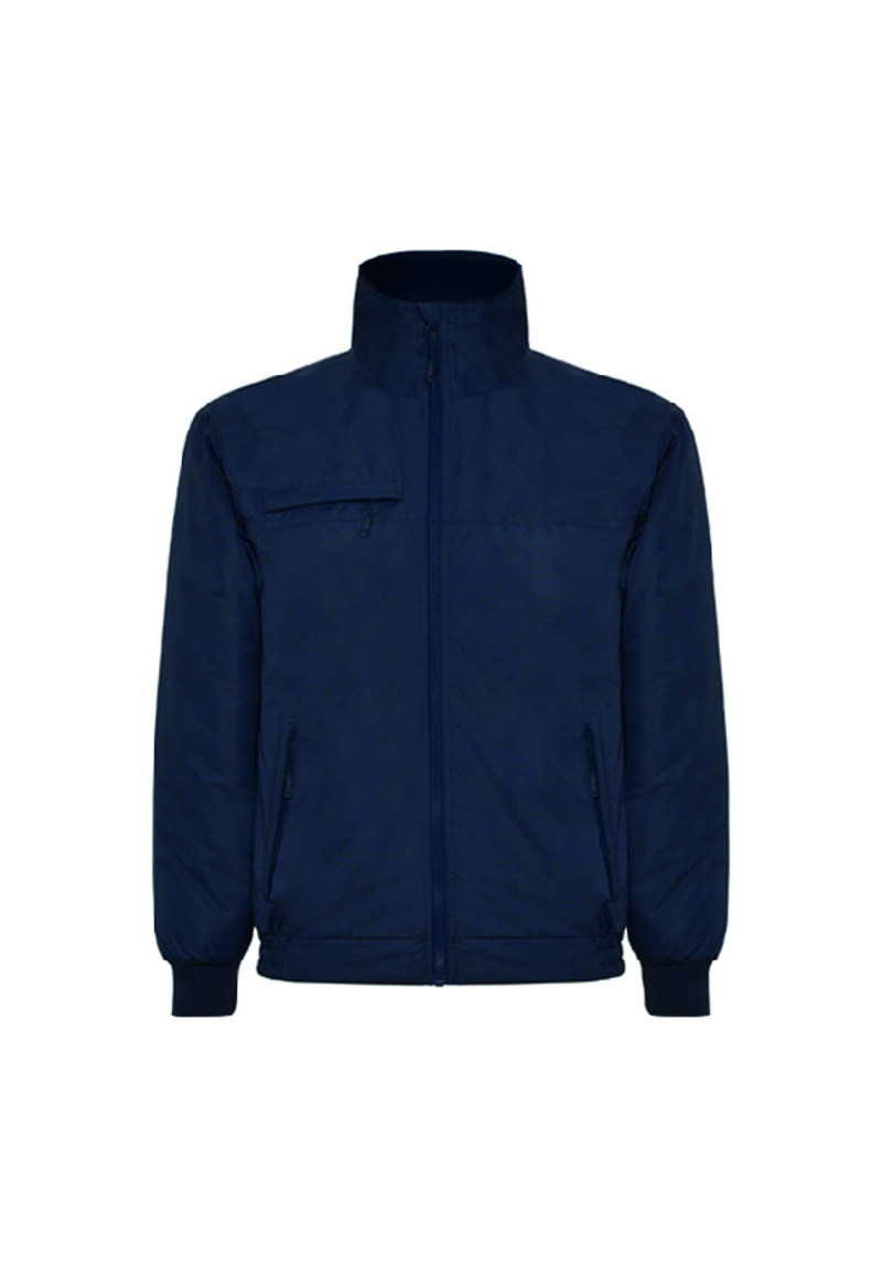 Giacca Giubbino confortevole imbottita in tessuto resistente con collo alto. 1.- Cerniera anteriore a tono con protettore mento e tiretto. 2.- Tre tasche esterne con patta, cerniera e tiretto. Una nel petto lato destro e due nei laterali. 3.- Rivestimento interno in micropie a tono. 4.- Polsini a costine 1x1.