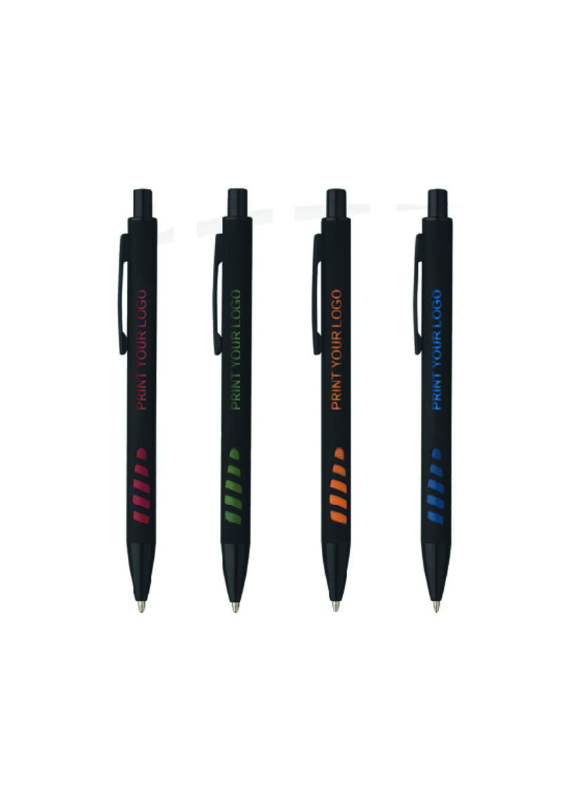 Penna a sfera a scatto in rubber. Clip in plastica. Personalizzabile