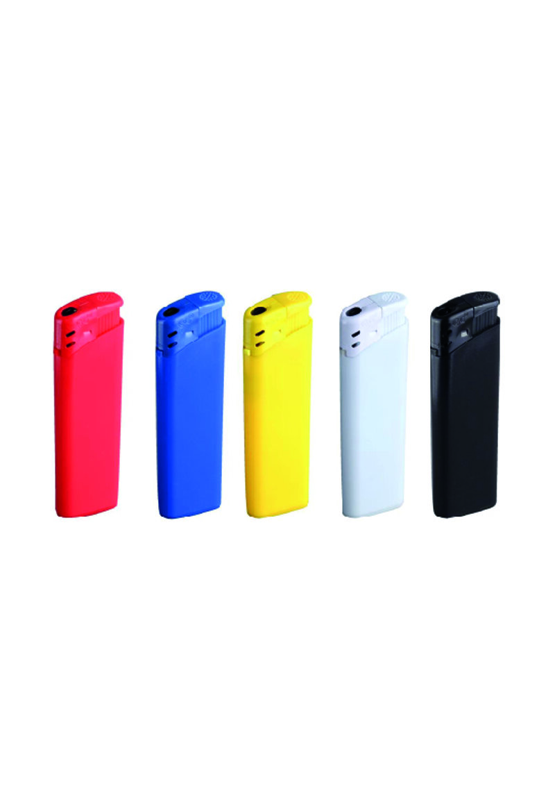 Accendino ricaricabile in plastica. Colori: nero, rosso, bianco, blu, giallo. Dimensioni: 2,5x8,2x1. Imballo:1000x colore